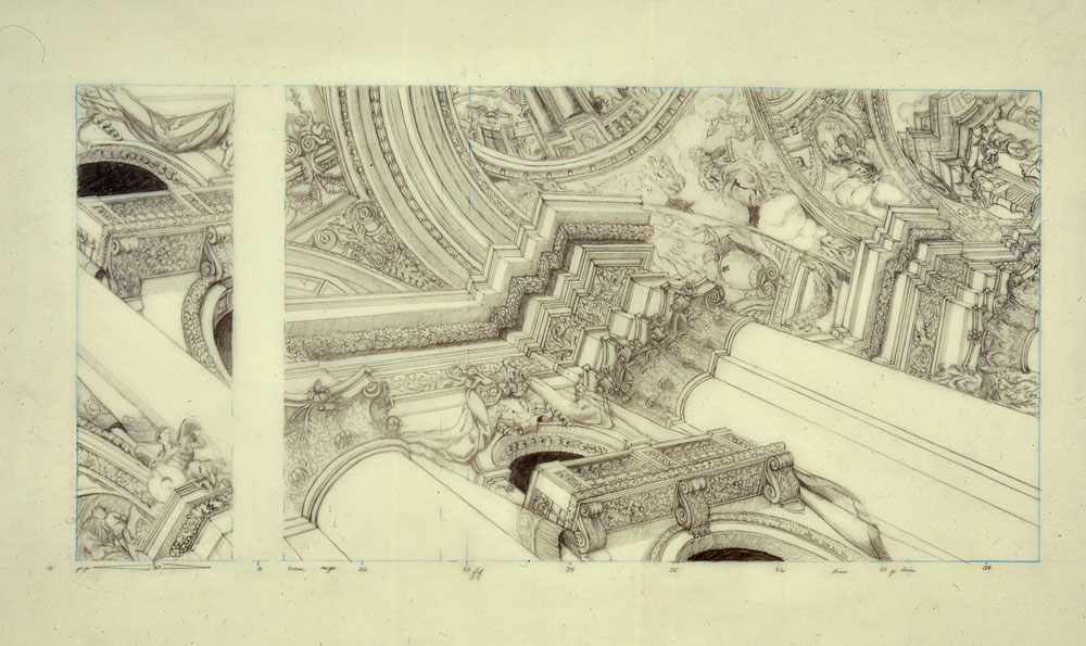 Original architectural drawing of St. Florian's Monastery (inside the church) (C) Jack Ox 1987