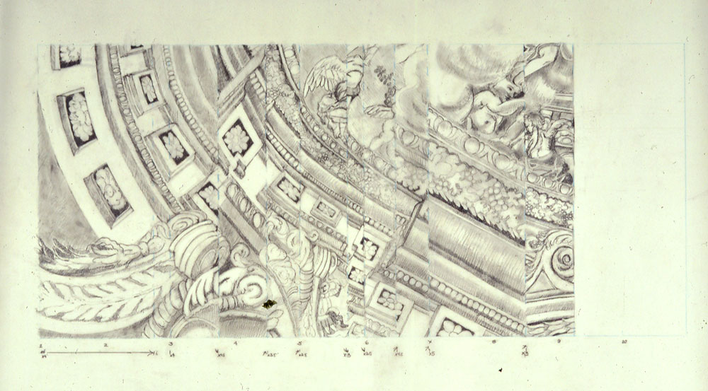 Original architectural drawing of St. Florian's Monastery (inside the church) (C) Jack Ox 1989