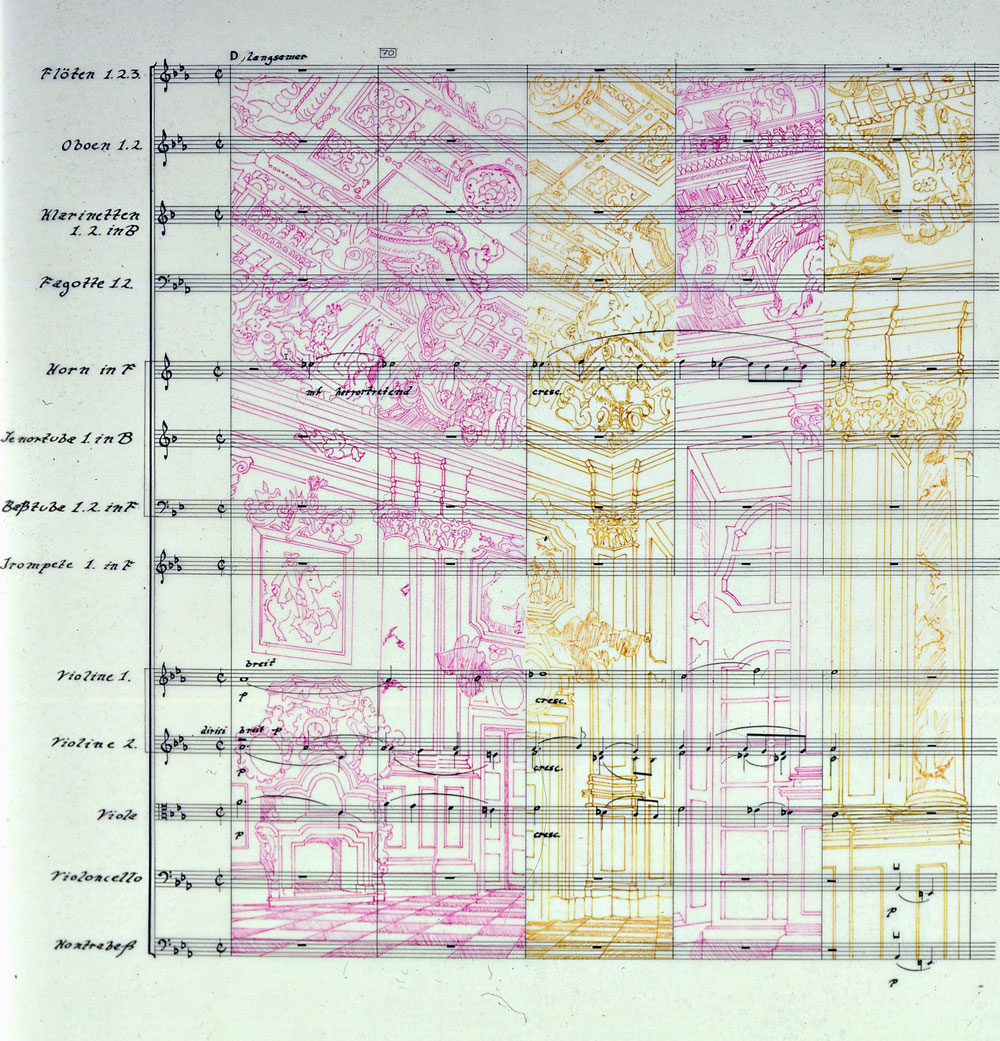 Hand copied music,measures 69-73 of Finale with St. Florian's Marble inside (C) Jack Ox 1990