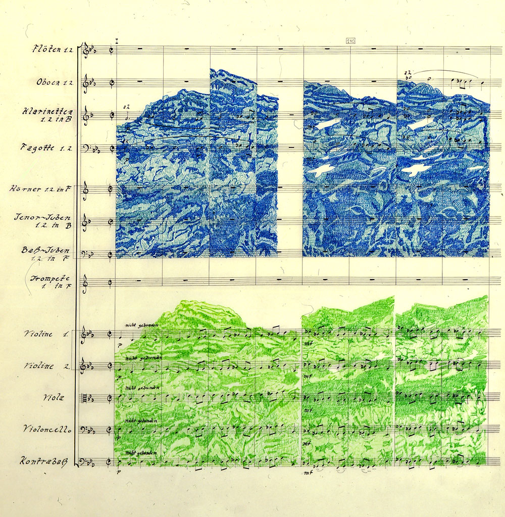 Hand copied music,measures 135-142 of Finale with St. Florian's Marble Hall (C) Jack Ox 1990