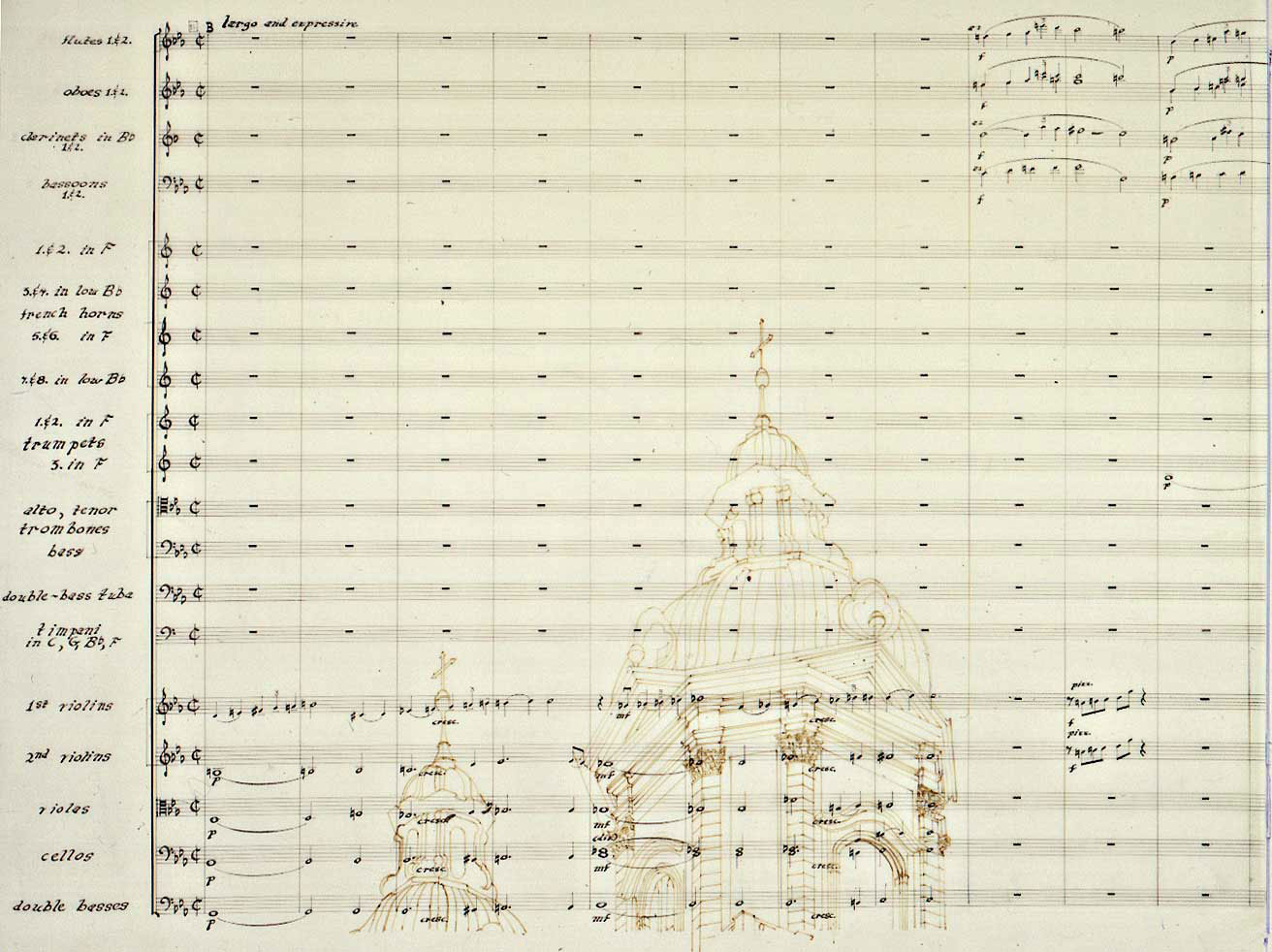 Hand copied music,measures 51-61 with St. Florian's Monastery (C) Jack Ox 1984