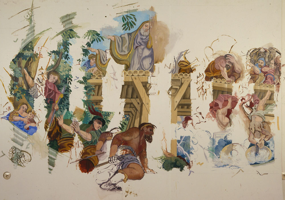 Actual painted fiberglass strips of the final painting photograped on the was prior to restructuring (C) Jack Ox 1988