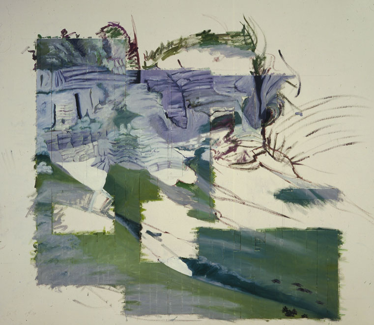 Actual painted fiberglass strips of the final painting photograped on the was prior to restructuring (C) Jack Ox 1990