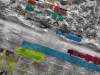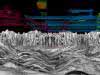 | The music is represented by a computer file of MIDI data. Each note as it is played creates a rectangular strip located in a specific place over the landscape which is determined by time and pitch. Pitch is the y axis and determines how high it is placed in space. Time is the x axis, going from left to right, so time says where the strip begins and ends in space. The initial attack of the note, which is how loud it begins, determines the width, or z axis of the rectangular strip, which remains constant until the note ends. Further changes in loudness or softness are reflected in the saturation of the timbre color which is part of the surface of the strip. Each strip is also embedded with a texture map taken from the original pencil drawings of the landscapes. For instance, all stringed strips receive images which are taken from an endless line of mirrored desert floor hills and washes called Strings. The texture is taken from higher and lower positions in the drawing based on pitch information as in my 2D wall visualizations. The new elements coming from Virtual Reality are that the strips hang in 3d space according to pitch, with chords appearing as stacks of strips. These geometrical forms are created as the music plays, synchronizing the sound and visual representations. Many paintings are created which together form a sculpture exiting in 3D space instead of one flat image. |